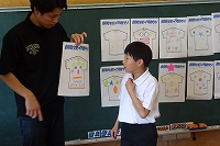 ↓ 5年 英語 what do you want ? 色や形,数等,お気に入りのティーシャツを選びました.