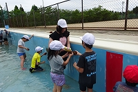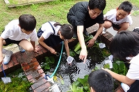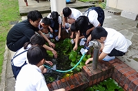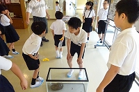 ↓ 5年 理科 メダカの学習に入っています.観察するために池から捕まえて水槽に移しました.うまくオスとメスが捕まえられたでしょうか.