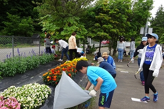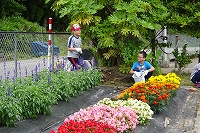 ↓ ボランティアさんが,笠野小の花壇の周りの除草をしてくださいました.草刈り機の入らない花壇を一本一本,草を抜いてくださいました.ひときわ花壇の美しい花が際立ちました.ありがとうございます.