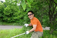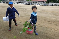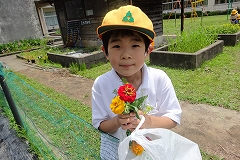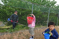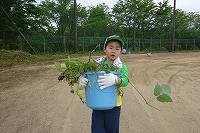↑緑の少年団の活動として4月29日に植えた笠野公園と笠野トンネル付近の花は生き生きと咲き誇っていました.高学年は花壇の除草もしました.吉倉地区の老人会の皆様は,吉倉方面に通じる通学路をきれいに除草してくださいました.枝下ろしをしてくださっている木はアカメカシワだそうです.