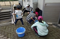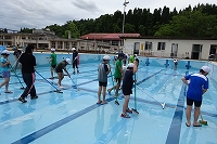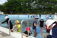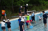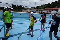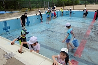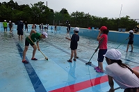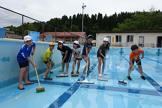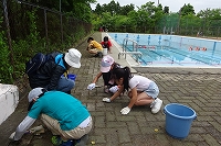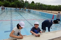↓ プールサイドを力を入れて磨きました.6年生は下級生によく声掛けをしてくれました.