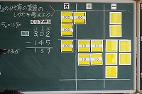 ↓ 3年 算数 10の位が0の引き算のひっ算の仕方を考えました.前に出て,説明することで,考えがはっきりしてきました.