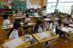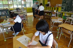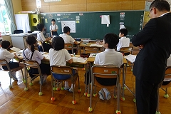↓ 午後は,白山市の白峰小学校の先生方が本校の学習の様子の視察に来られました.学習ガイドの声かけで自分たちで一生懸命学び合っている姿を見られたくさんほめていただきました.真剣に一生懸命学んでいる姿は本校の自慢の一つです.