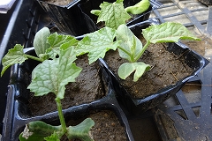 ↓ 4年理科 ヘチマの観察 子葉や本葉の観察をしました.茎の長さ,葉の数など依然と比較して生長ぶりを実感できました.