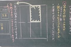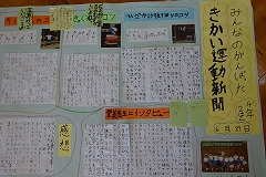 ↓ 4年国語 調べたことを壁新聞にまとめていきます.今回のテーマは器械運動交歓会.練習や当日の笠野小の子供たちの状況をインタビューや調査などから客観的にまとめ報告する学習です.モデルの新聞を見てイメージを持たせています.