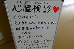 ↑ 1年,4年生は心臓検診を行いました.手足にいろいろ器具を取り付けましたが,1年生も上手に受けることが出来ました.4年生は次回は中学1年生で受診します.