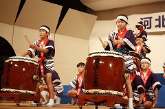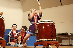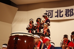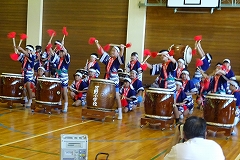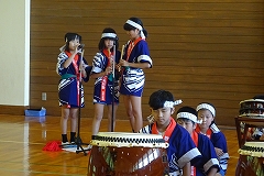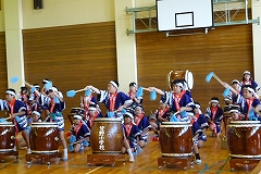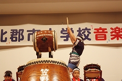 ↓ この地に伝わるでんでこ太鼓,郡市音楽会で全力の演技ができました.画像からその迫力ぶりをご想像して頂けますでしょうか.でんでこ太鼓第5話の「共に生きる喜び」を表現した迫力ある太鼓と笛の音色は笠野の子供たちの体にいつまでも響き続けることでしょう.これまでご指導いただきました地域の先生,励まし支えてくださいました保護者や地域の皆様に心から感謝申し上げます.