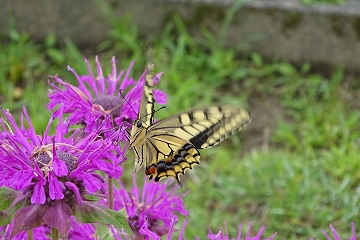 ↓ 羽化して飛び立ったアゲハ蝶が中庭の花壇に戻ってきました.