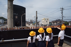 ↓ 3年 社会 津幡駅から津幡町の広がりを見学しました.東西南北の特徴を実際に見てノートに記入しました.