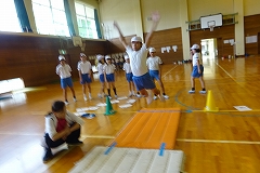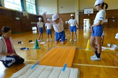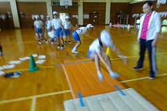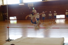 ↓ 5,6年体育 走り高跳び 歩数を数えてどこからスタートすればよいか考え,タイミングをつかんでいます.
