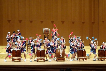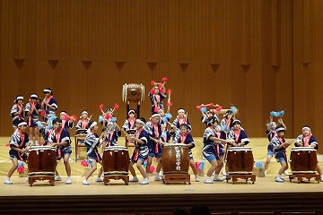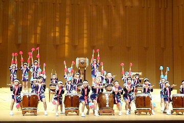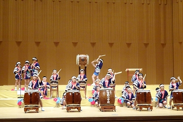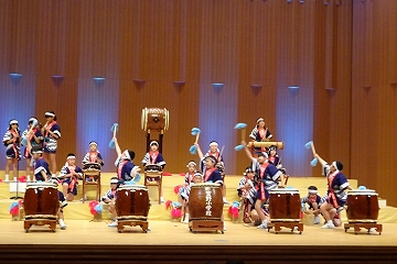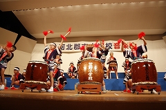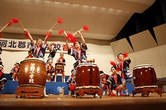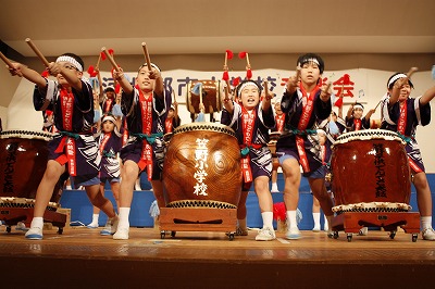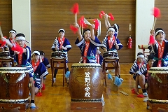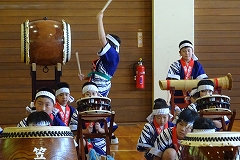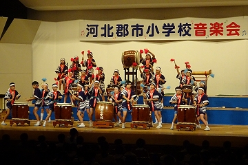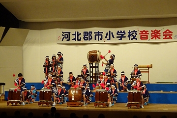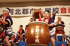 ↓ この地に伝わるでんでこ太鼓,郡市音楽会で全力の演技ができました.画像からその迫力ぶりをご想像して頂けますでしょうか.でんでこ太鼓第5話の「共に生きる喜び」を表現した迫力ある太鼓と笛の音色は笠野の子供たちの体にいつまでも響き続けることでしょう.これまでご指導いただきました地域の先生,励まし支えてくださいました保護者や地域の皆様に心から感謝申し上げます.