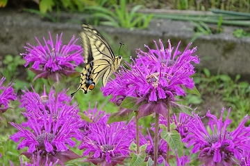 ↓ 羽化して飛び立ったアゲハ蝶が中庭の花壇に戻ってきました.