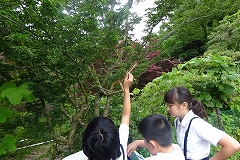 ↓ 3年生 暑くなると 季節の移り変わりとともに自然はどのような変化をしているのか調べに笠野の森に入りました.