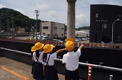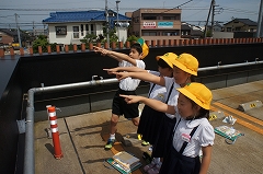 ↓ 3年 社会 津幡駅から津幡町の広がりを見学しました.東西南北の特徴を実際に見てノートに記入しました.