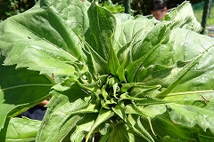 ↓ 3年理科 暑くなるとぐんぐん伸びていきます,ひまわりが背丈を越してしまいそうです.真ん中にはもうしっかりとつぼみが出来上がってました.