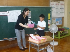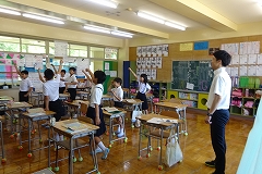 ↓5年 英語 I can~.「今日の英語,楽しかった!」と笑顔いっぱいで勉強しています.