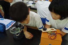 ↓5年 理科 メダカの卵,受精をして育っています.1日目,2日目,3日目と順に顕微鏡を見て観察しました.「目が見えた!」と感動が湧き上がっていました.小さな命の誕生,感激です.