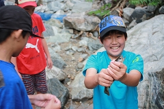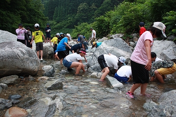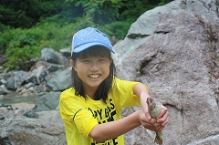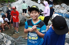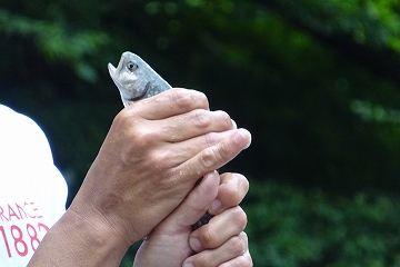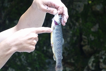 ↓ 2日目は予定通りいわなつかみができました.「生命をいただく」ということはどういうことか,じっくりと考えました.このイワナは3年間生きたイワナだそうです.