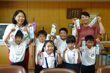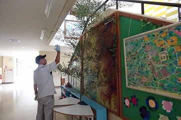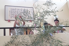↓ 笠野小でも笹に願い事を書いて飾り付けました.1年生はなんとパソコンで書いて,顔やイラスト入りです.校長室に見せに来てくれました.