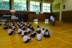 ↓津幡町のまちなか科学館の館長さんをお招きして,科学の面白さを体験する授業をしていただきました.もうすぐ夏休み,科学研究の題材のヒントや研究の進め方を教えてくださいました.もう,テーマが決まっている人もいましたが,追究することの楽しさを教えていただきました.