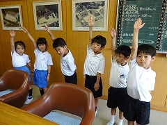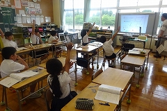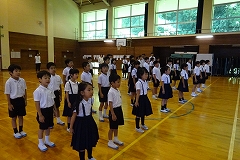 1学期の終業式では,校訓の「愛語:やさしいことばをつかう」「勤勉:よいと思ったことは行動する」「進取:初めに動く人になる」について映像を見ながら振り返りました.子供たちの目からは素直さと一生懸命な心伝わってきます.成長した自分を実感し,さらに希望の未来へとつなげてください.また,川やため池に近寄らない,夏休みは学校のランチルームと体育館は工事をしますので工事現場に近寄らないことを指導しました.安全で楽しい夏休みをお過ごしください.