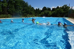 学習の後は,プール学習最終回です.上級コースは,平泳ぎ,クロール,そして距離に挑戦しました.中級コースは,息継ぎがとても上達しました.50m,25m達成者も続出しました.初級コースも伏し浮き,バタ足が上達し,水に潜ることにも慣れ,3日間の成果は大きかったです.これからはプール開放時にはプールに来てさらに上達を目指してください.