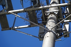 こちらは運動場にあるナイター照明ですが,ここにカラスの巣があるそうで,業者が撤去しに来ました.カラスのひなはもう巣立っていて,巣はもう使っていません.↑
