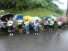 ↑こんなところにかたつむり発見!みんなで歩くと雨の日も楽しかったです.