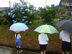 ↓1年生 雨の日も楽しいな 生活科 雨の日さんぽ どんな発見があったのでしょうか.学校から笠野公園まで雨の中を歩いてきました!