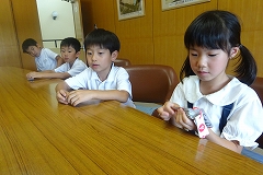 ↓ 長休み,1年生は校長室に計算カードのチャレンジに来ました.前回より上達していてびっくりしました.これからの計算の基礎ですから,何度も練習して計算名人を目指しましょう.