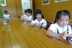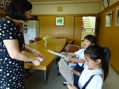 ↓ 算数,国語のサマースクールはエアコンのあるPCルーム,校長室,そして職員室で行いました.中学生がミニ先生となり,大活躍でとても助かりました.「説明の仕方が上手ですね」と中学生をほめると,「笠野小で鍛えられましたからね」と大変うれしい反応が返ってきました.このような子を中学校に送り出せるよう,ますます頑張りたいと思いました.