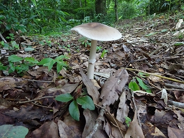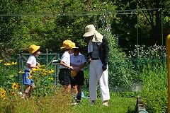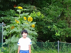 ↑ 畑の整備もしました.ひまわりがぐんぐん大きくなり,背丈を追い越しました.昼休みは,笠野の自然とのふれあいを通して自然と対話できたでしょうか.梅雨の雨をたっぷり吸って,みごとなきのこが元気に育っていてびっくりしました.