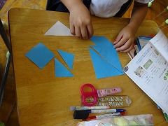 ↑ 3年算数 形作り 同じ形を作るよう思考しました.作業することで図形的なカンが育ってきます.