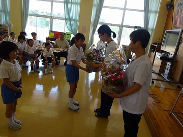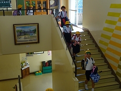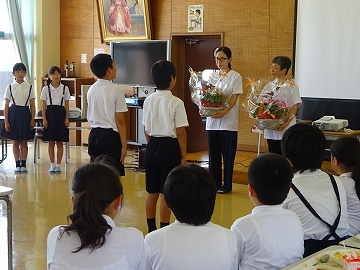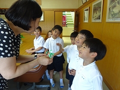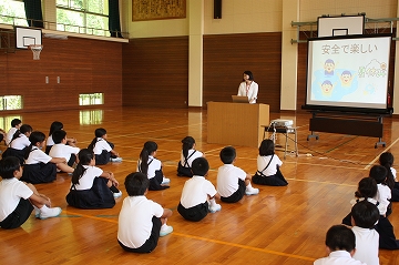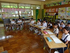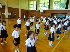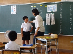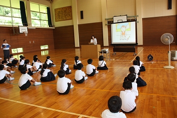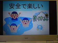 1学期の終業式では,校訓の「愛語:やさしいことばをつかう」「勤勉:よいと思ったことは行動する」「進取:初めに動く人になる」について映像を見ながら振り返りました.子供たちの目からは素直さと一生懸命な心伝わってきます.成長した自分を実感し,さらに希望の未来へとつなげてください.また,川やため池に近寄らない,夏休みは学校のランチルームと体育館は工事をしますので工事現場に近寄らないことを指導しました.安全で楽しい夏休みをお過ごしください.