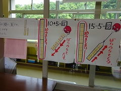 ↑ 1年生は10より大きな数の計算に入りました.12+3 の計算の仕方を考えました.昨日は10+5でしたが,「同じところと違うところがある」と子供たちは話していました.同じところは,答えはどちらも15,10のかたまりとばらで計算するとできることを見つけていました.