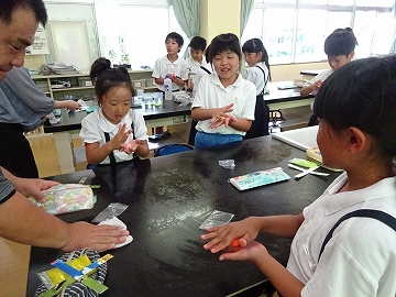 笠野小の元校長先生にもお手伝いいただき,充実したサマースクールが出来ました.↑