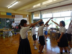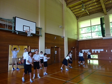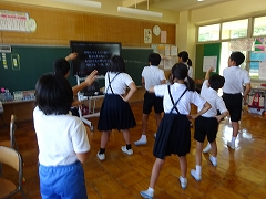 ↑5,6年生 運動会の準備を始めています.応援団や準備運動を自分たちで相談して考えています.「進取の精神」です.
