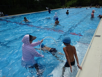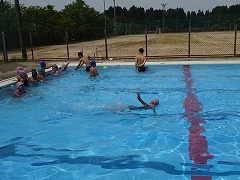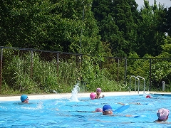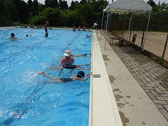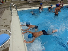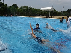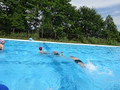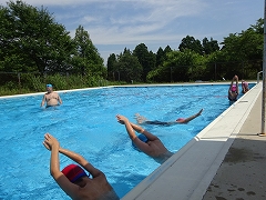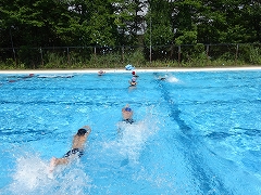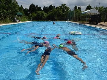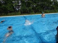 学習の後は,プール学習最終回です.上級コースは,平泳ぎ,クロール,そして距離に挑戦しました.中級コースは,息継ぎがとても上達しました.50m,25m達成者も続出しました.初級コースも伏し浮き,バタ足が上達し,水に潜ることにも慣れ,3日間の成果は大きかったです.これからはプール開放時にはプールに来てさらに上達を目指してください.