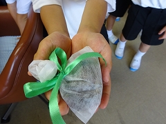 ↓1年生が畑で育てたハーブでポプリを作りました.ラベンダー,リトルチュチュ,ミンティア,どれもゆったりとした高貴な香りでした.校長室に飾っておきます.ありがとう.