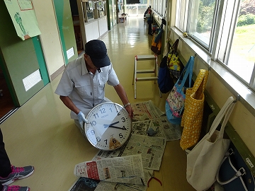 ↓ また,暑い中ボランティアの方が草むしりに来てくださいました.本当に頭が下がる思いです.中庭の時計の修理に校務がチャレンジしました.うまくいったようです.