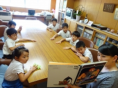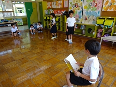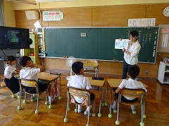 ↓ 1年生 お話を聞くのが大好きです.先生の読み聞かせにお話の世界にぐっと浸っていました.