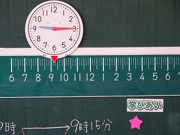 ↓ 2年 算数 時刻と時間の違いを確かめました.何分後の時刻,何分前の時刻を勉強しました.「前の」意味は時刻が戻るということを話し合って理解しました.生活の中でも使うことでだんだん慣れていきます.
