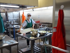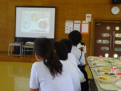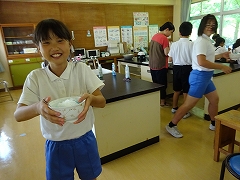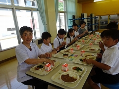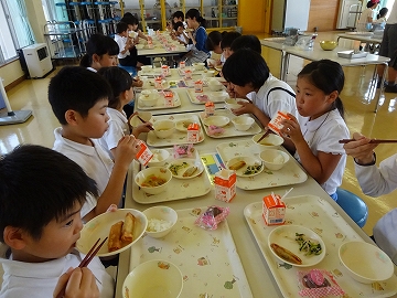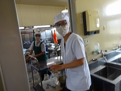 ↓ 笠野小学校の調理場での給食は今日がいよいよ最終日となってしまいました.最後の給食はカレーライスでした.今日は調理師さんと一緒にランチルームでみんなで給食をいただきました.普段,野菜が苦手な児童も今日は完食でした.これまでおいしい給食をありがとうございました.児童代表あいさつでは「いやなことがあっても,給食の時間になると,元気が出てきました」と感謝の気持ちを述べていました.職員からは手作りビデオレターをプレゼントしました.喜んでいただけたでしょうか.給食を作ってくださる方が身近にいらっしゃるということがとても幸せでした.これからもお体に気を付けられてご活躍ください.ありがとうございました.
