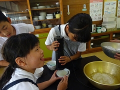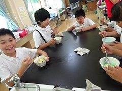 ↓ クラブ 今日の家庭クラブは,かき氷づくりでした.イチゴやメロン味を楽しみました.夏ですね.
