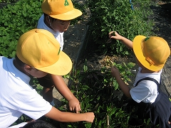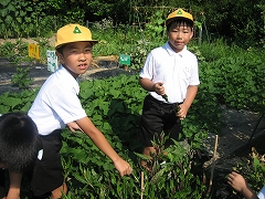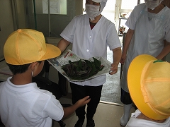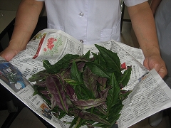 ↓ 2年生が畑で金時草を収穫しました.調理場へもっていき,料理をしていただくことにしました.今日の給食のメニューにもう加わっています.自校給食のよさでありがたいです.しかし,笠野小調理場での給食も,あと2日です.