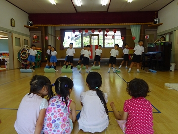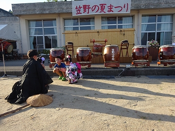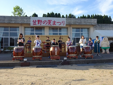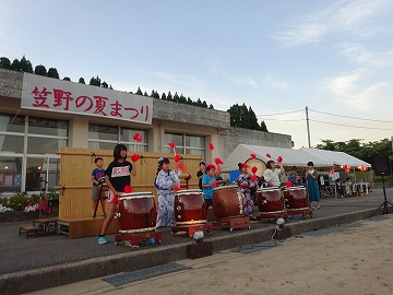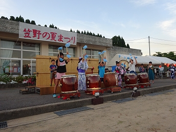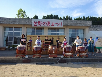 ↓ 笠野夏まつり 子供たちの有志が「笠野でんでこ太鼓」を披露しました.保護者の方にも縦笛の協力をしていただき,また,1年生,2年生の有志もデビューしました.ふるさとの太鼓の響きを子供たちの手で受け継ぎ,伝え,地域を盛り上げていってください.たくさんの応援ありがとうございました.ご指導いただきました地域の太鼓の先生,本当にありがとうございました.