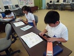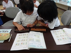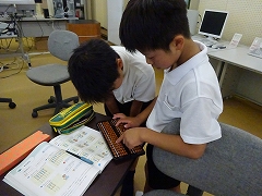 ↓ 算数 4年生 そろばんの学習です.小数のたし算や引き算の練習をしました.クーラーのあるPCルームでの学習です.1日1時間は涼しい部屋で学習できたらいいなあと思っています.