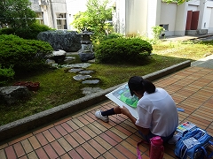 ↓ 学校の思い入れのある場所の風景を描いています.どんな思いをその場所に込めているのか,聞いてみたいです.