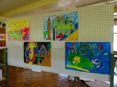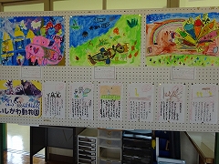 ↓こちらは,1年生教室の絵の掲示です.いしかわ動物園に行った時のことを思い描いています.通知表渡しでご来校の際にゆっくりご覧ください.