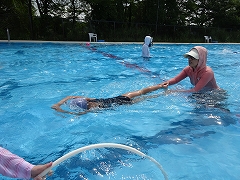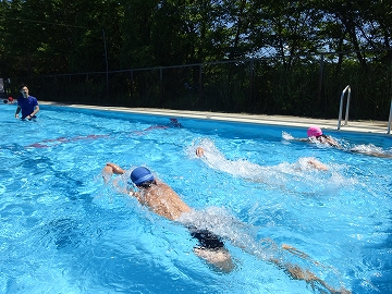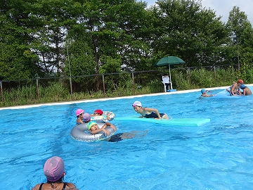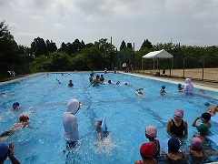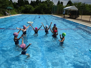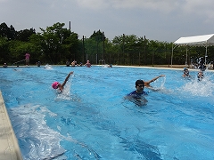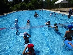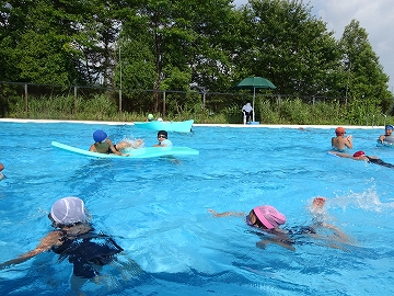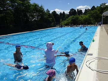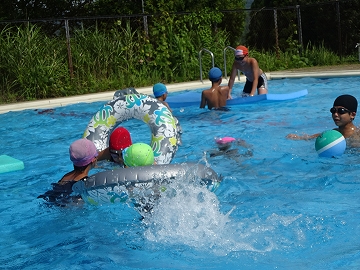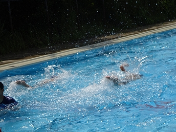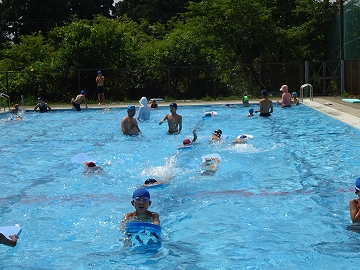 ↓ 午前中はサマースクールでのプール学習でしたが,午後のプール開放にも元気に来ていました.プールは最高です!